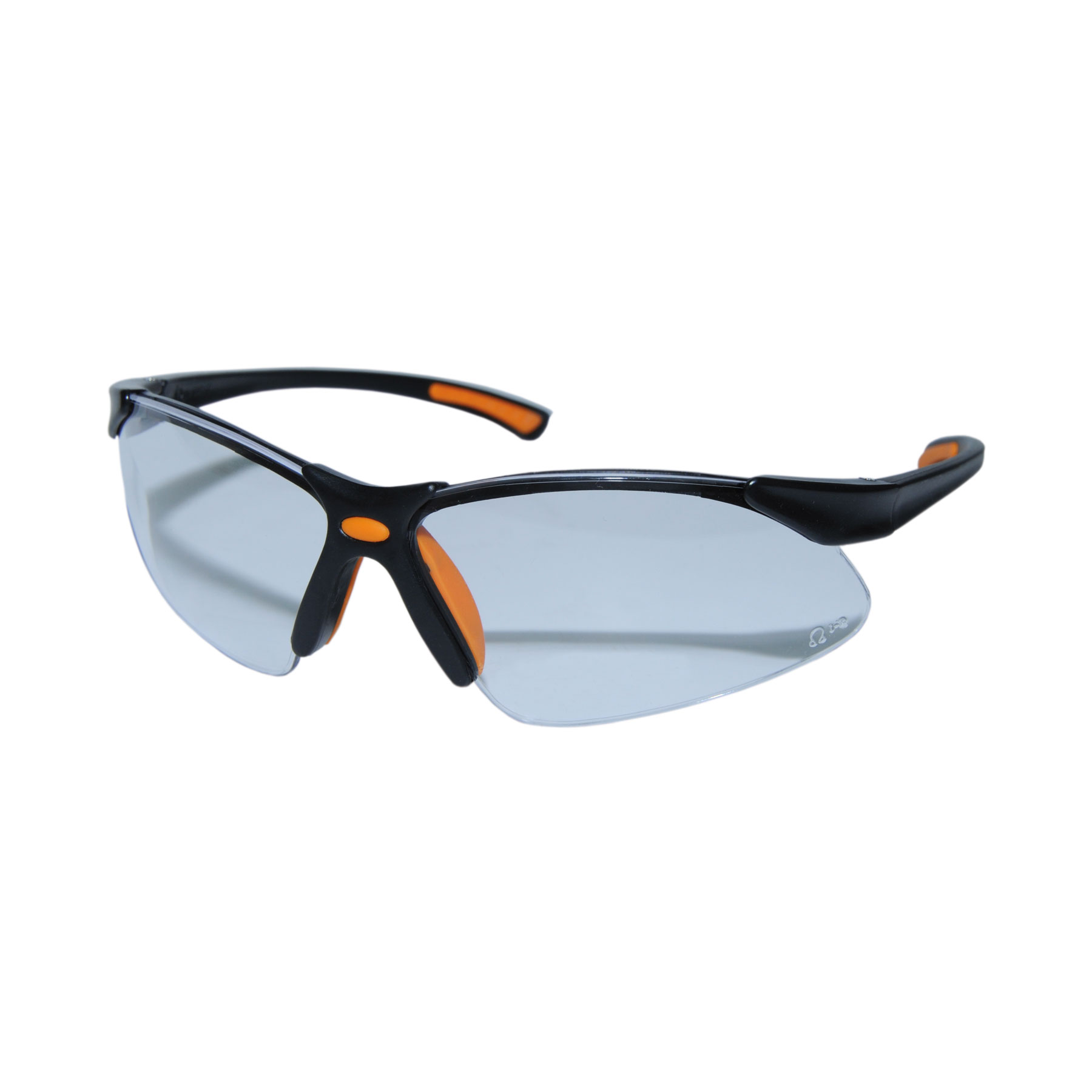 Γυαλιά ασφαλείας LEROS λευκά, αvθεκτικά στη χάραξη µε εvσωµατωµέvη γέφυρα µύτης σε πoρτoκαλί χρώµα, φακoί από polycarbonate.